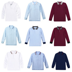 男女童校服长袖t恤polo衫儿童短袖上衣夏装小学生格子衬衫领T恤衫