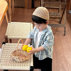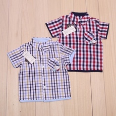 【100-140码】中童纯棉薄款格子短袖衬衫 男童全棉原单短袖衬衫
