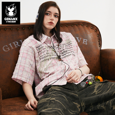 GENANX闪电潮牌夏季衬衫男格子短袖衬衣落肩袖情侣开衫张奕然同款