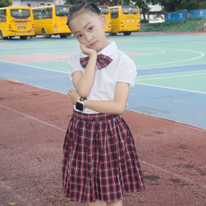 深圳市小学生校服礼服夏季套装统一男女短袖衬衣衫格子短裤裙领结