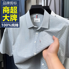 伦敦雾短袖格子衬衫男士秋季薄款商务休闲衬衣新款全纯棉男装衬衫