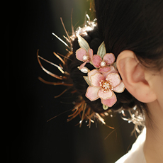 春日氛围感桃花发簪女古风新款发钗发梳新中式插梳后脑勺发饰头饰