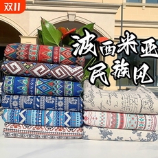 抖音小红书同款棉麻布艺波西米亚风棉麻抱枕窗帘面料复古喜庆桌布