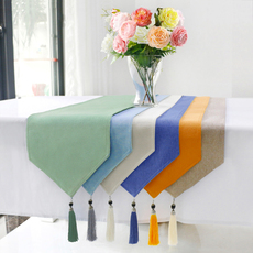 轻奢风纯色仿棉麻桌旗手工流苏餐桌布艺家用茶席茶几旗电视柜盖巾