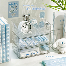 透明抽屉式收纳盒桌面化妆品置物架化妆盒可爱女学生宿舍文具