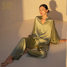 万事利真丝睡衣套装女长袖100%桑蚕丝情侣可外穿休闲家居服 晨曦
