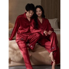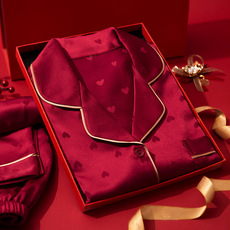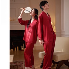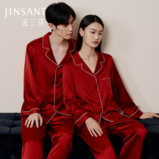 维多利亚新中式结婚睡衣女桑蚕丝春秋季本命年红色新娘男士套装