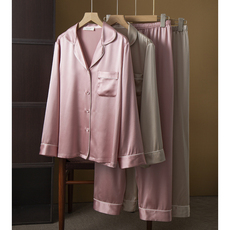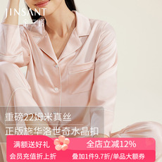 金三塔真丝睡衣女100%桑蚕丝简约情侣丝绸家居服男宽松套装送礼物