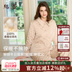丝界新款棉袄填充物100%桑蚕丝保暖长袖家居服三层加厚睡衣女外穿
