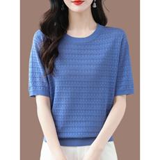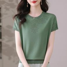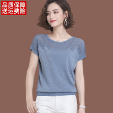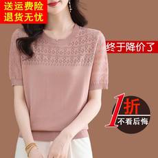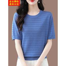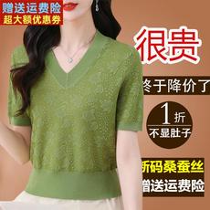 妈妈装桑蚕丝短袖t恤女夏季新款宽松洋气镂空冰丝针织衫打底上衣