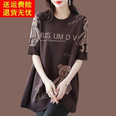 胖mm桑蚕丝T恤女装中长款宽松短袖时尚冰丝印花薄款洋气遮肚200斤