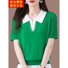 妈妈夏装新款短袖polo领t恤女气质漂亮翻领体恤桑蚕丝针织上衣薄