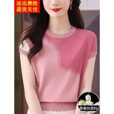冰丝针织衫短袖T恤女夏季2025新款妈妈装宽松大尺码洋派桑蚕丝上