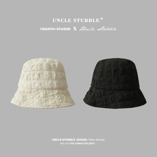 出口韩国东大门盆帽2026年流行泡泡面料女生水桶帽子米白色渔夫帽