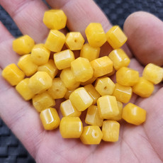 蜜蜡黄石英岩玉六棱珠路路通玉石散珠鸡油黄多棱珠桶珠饰品配件珠