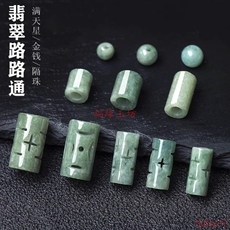 天然A货翡翠玉石散珠十字刻花桶珠路路通珠子DIY项链手链手工材料