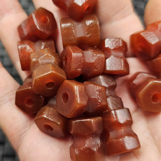 仿古玛瑙扁形路路通玉石散珠鸡血红玉扣桶珠手链饰品配件手工珠子