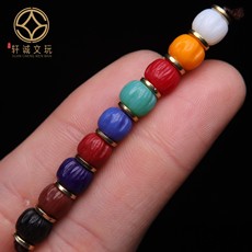 淄博古法老琉璃红色葫芦桶珠鼓珠手链古珠老珠子收藏琉璃手串