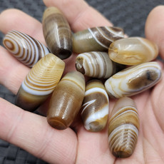 包浆缠丝玛瑙天珠路路通玉石散珠咖啡色玛瑙勒子桶珠米珠饰品珠子