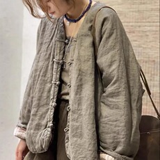 新中式设计师款高品质水洗亚麻做旧夹棉小棉衣百搭有型布衣风棉服