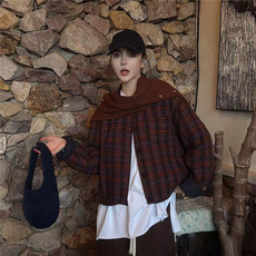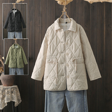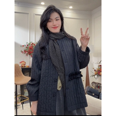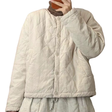 TYJR 冬季新款2025韩版宽松圆领长袖棉衣棉服格子夹棉外套女55711