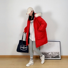 羽绒棉服女年冬季新款加长款棉衣韩版宽松加厚连帽棉袄外套