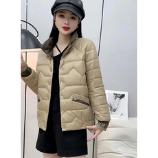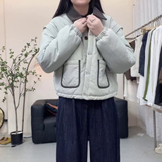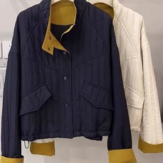 韩版拼色立领轻薄棉衣女欧货2025秋季新款宽松休闲百搭棉服