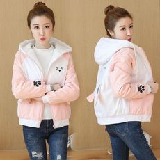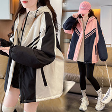 2025秋冬新韩版宽松休闲百搭连帽棉衣外套女短款拼接薄款棉服上衣