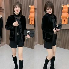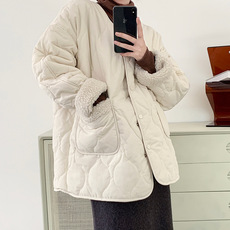 网红2025秋冬韩版宽松新款丝绒拼接休闲百搭时尚气质外套薄款棉服