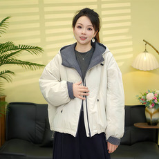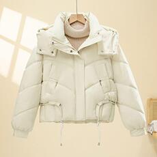 跨境棉衣女2025冬新款韩版短款棉服加厚帽子可拆卸蓬松面包服
