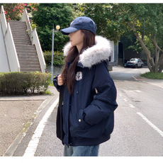 时尚翻领大毛领棉衣女2025冬新款小个子韩版宽松短款羽绒棉服