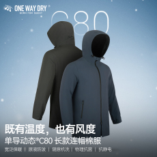 单导动态C80中长款连帽棉服商务防泼溅动态保暖防风抗静电外套