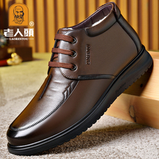 老人头高帮棉鞋男款加绒加厚冬季真皮中老年爸爸鞋皮毛一体棉靴子