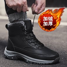 冬季黑色高帮男鞋学生加绒保暖棉鞋中老年爸爸防滑耐磨厚底雪地靴
