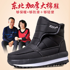 东北加绒加厚男鞋高帮中老年雪地靴爸爸棉鞋男女大码保暖冬季防滑