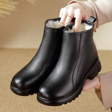 品牌真软皮软底加绒加厚短靴女羊毛绒中老年人女士棉鞋高档妈妈鞋