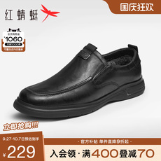 红蜻蜓真皮妈妈鞋冬季新款平底短靴中老年软底皮鞋舒适加绒女棉鞋