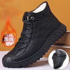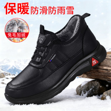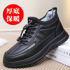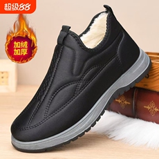 冬季棉鞋男加绒保暖高帮皮鞋软底防滑中老年爸爸休闲鞋男防寒防水