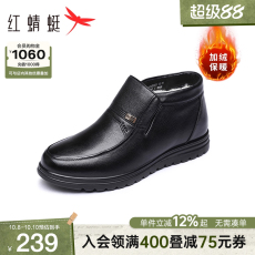 红蜻蜓爸爸棉鞋冬季高帮男鞋保暖加绒爸爸鞋中老年加厚羊毛皮鞋男