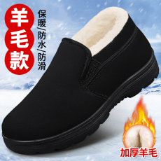 冬季老北京布鞋男中老年加绒加厚保暖老人一脚蹬工作防寒羊毛棉鞋
