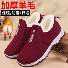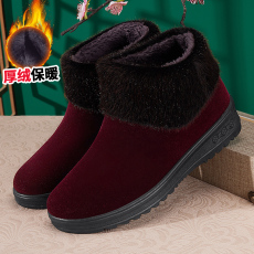 冬季老北京布鞋女棉鞋加绒保暖中老年人纯羊毛妈妈棉靴厚底雪地靴