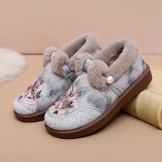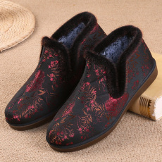 老北京布鞋女棉鞋冬季加绒保暖厚底防滑软底防水中老年妈妈绣花鞋