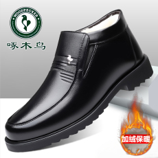 啄木鸟棉皮鞋男士冬季加绒保暖中老年软底防滑爸爸鞋羊毛加厚棉鞋