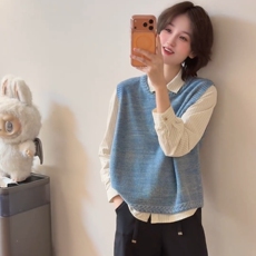 森系 纯棉叠穿马甲 女士全棉V领针织马夹 毛线坎肩 春秋款 女装
