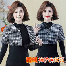 秋冬中老年人驼绒棉低领护肩中袖女士坎肩护肩膀睡觉防寒马甲保暖