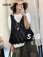 芳尘2025春夏文艺复古纯棉马甲女镂空钩花背心叠穿韩版宽松坎肩女