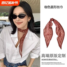 复古三角巾丝巾2025新款方巾腰巾搭配系脖配饰红色棕色粉色棉麻