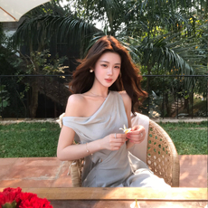 ByYou夏季新款白色露肩无袖上衣亚麻套装女高腰a字短裤棉麻两件套