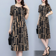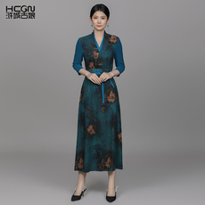 浒城古娘国风时尚气质优雅修身夏季女士印花修身香云纱显瘦连衣裙