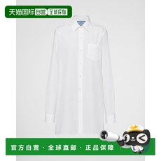 自营欧洲直邮Prada普拉达 女士白色棉衬衫领长袖连衣裙